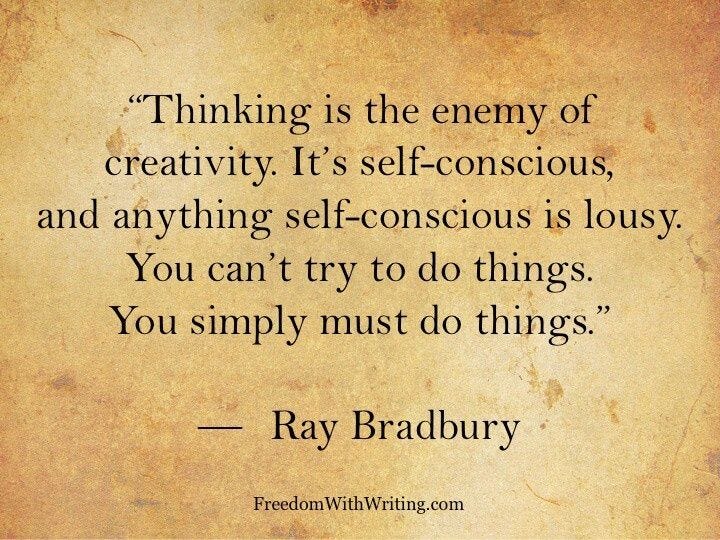 "The need to be a great artist makes it hard to be an artist. The need to produce a great work of art makes it hard to produce any art at all."
