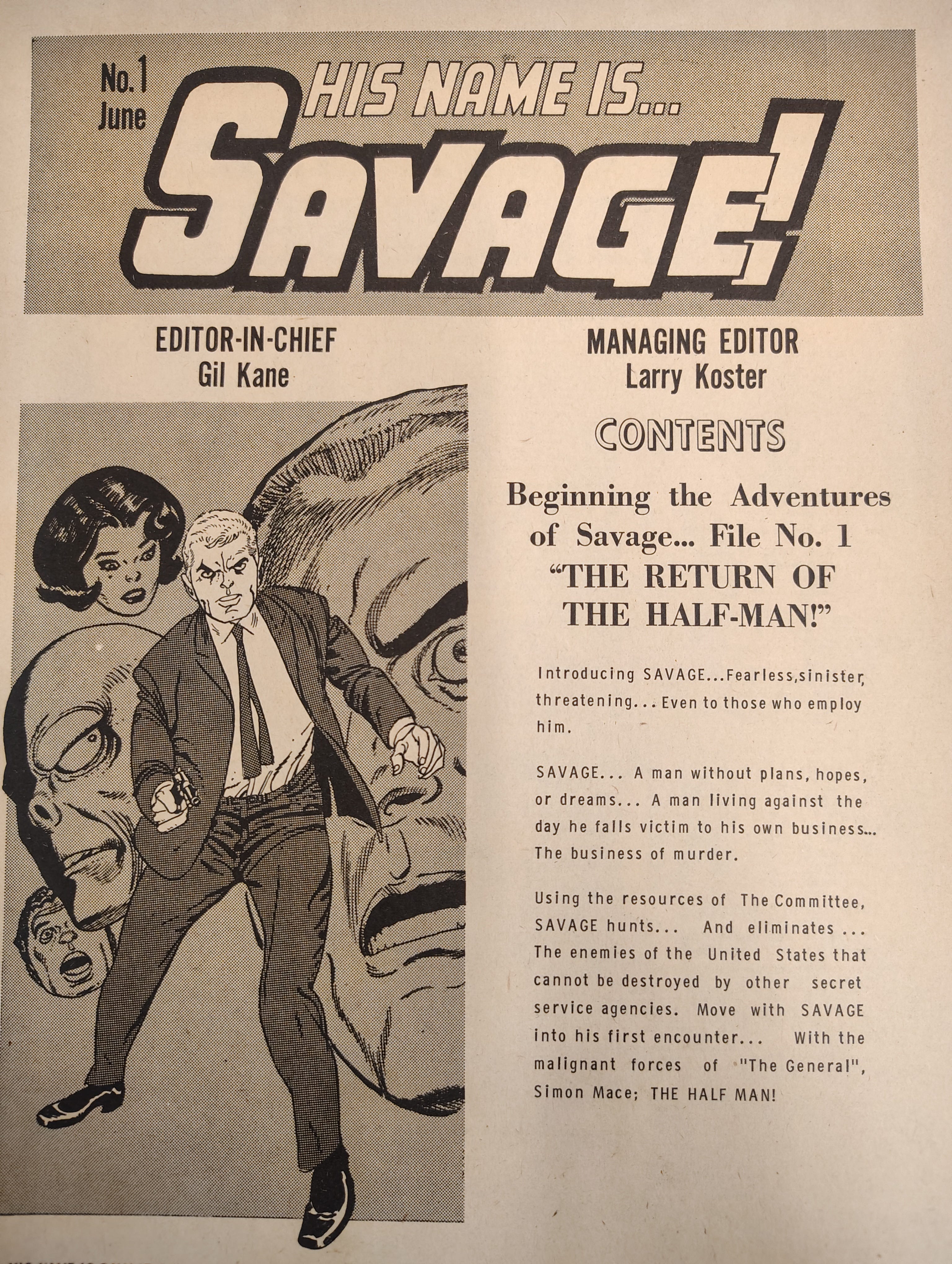 Today I am looking at a Gil Kane work that was separate from his work on Marvel and DC Comics. His magazine format-sized, self contained story His Name Is…Savage! Published in 1968 for Adventure House Press,